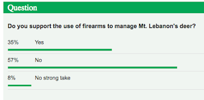 The 2017 executed (or is it execution?) contract for "sharpshooting" has been posted on the municipal site and here on Lebo Citizens. Note: The municipal link is the direct link to the contract. It is hidden by scrolling through "Trending Now, " > Deer Management Information posted on July 20, 2016 > Additional Info.... Mt. Lebanon wouldn't want any of the killing information on the Home page.Susan, if we could get an announcement on Facebook or if the police could utilize their public access to Nextdoor and alert folks of a situation that could be deadly if one is in the wrong place at the wrong time, I would feel much better. I can just do so much on Blogger, Nextdoor, and Facebook.